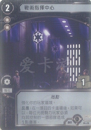 :在一张目的卡进场后,如果可以,每位光明势力玩家必须向其控制的一个部队造成1点伤害。